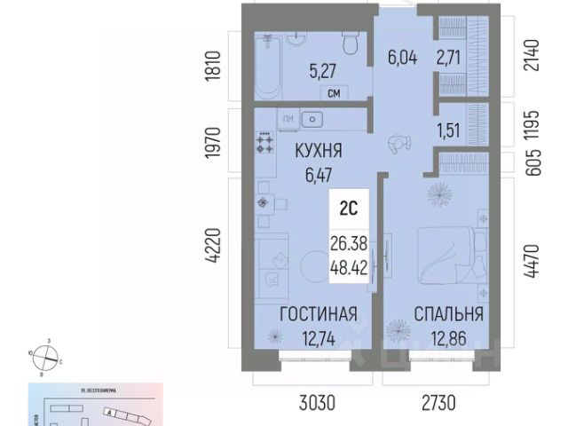 2-к квартира в ЖК Новатор; По адресу: ул. Энтузиастов/Рудольфа Нуреева/Мусы Гареева, стр. 5 Литер 5, Секция 3. 3-й этаж 22- этажного жилого дома Общая площадь 48.75кв.м.; Жилая площадь 24.40 кв. м. от ГК "Первый Трест". Срок окончания строительства: 1 квартал 2026 года. Просим представителей агентств недвижимости не беспокоить. Квартира с качественной предчистовой отделкой, позволяющей реализовать любые дизайнерские решения: - Стены: выровнены и оштукатурены, готовые под финишную отделку по вашему вкусу. - Пол: выполнена стяжка, обеспечивающая ровное основание для любых напольных покрытий. - Электрика: разводка выполнена до щитка, что обеспечивает безопасность и удобство при дальнейшем монтаже. - Отопление: установлены радиаторы и выполнена полная разводка системы отопления. - Водоснабжение: выведены коммуникации под воду, готовые для установки сантехнического оборудования. Хотите узнать подробнее о планировке или подобрать по вашим параметрам? Свяжитесь с нами! Жилой комплекс "Новатор" - современный комфорт-класс, где каждый элемент продуман для вашего удобства и гармоничной жизни. Преимущества : - Современный комфорт-класс: продуманные планировки и конфигурации комнат позволяют легко обустроить пространство по вашему вкусу, обеспечивая максимальный комфорт проживания. - Централизованная система кондиционирования: чистый и свежий воздух в каждой квартире создаст идеальный микроклимат для здоровья и комфорта. - Удобства на первом этаже: колясочные и велосипедные помещения облегчат повседневные задачи и освободят дополнительное место в квартире. - Безопасность на высшем уровне: закрытый двор и система видеонаблюдения по всему периметру, в холлах и лифтах, обеспечат спокойствие вам и вашей семье. - Подземный паркинг: с возможностью спуститься к автомобилю на лифте прямо из квартиры. - Транспортная доступность: Одним из преимуществ жилого комплекса "Новатор" является высокая транспортная.В непосредственной близости от ЖК находятся остановки общественного транспорта и две главные магистрали города: пр. Салавата Юлаева и пр.Октября. Инфраструктура: - Активный образ жизни: уникальные детские площадки и зона CrossFit для занятий спортом на свежем воздухе. - Шопинг и развлечения: рядом гипермаркеты, кинотеатр Киномакс, ТРЦ "Планета" и ипподром "Акбузат". - Социальные объекты: в шаговой доступности детские сады, школы, аптеки и офисы ведущих банков РФ. - Отдых и досуг: множество кафе, ресторанов и салонов красоты для приятного времяпровождения. Мы предлагаем различные варианты покупки квартир в нашем жилом комплексе: - Оплата наличными - Рассрочка до 24 мес. - Семейная ипотека от 3,5% - IT Ипотека - Ипотека для всех от 13,9% - Ипотека от 20 ведущих банков страны: наши специалисты помогут подобрать оптимальную программу кредитования. - Использование материнского капитала - Программа Trade-in: Бесплатно поможем продать вашу старую квартиру и подобрать новую в нашем комплексе