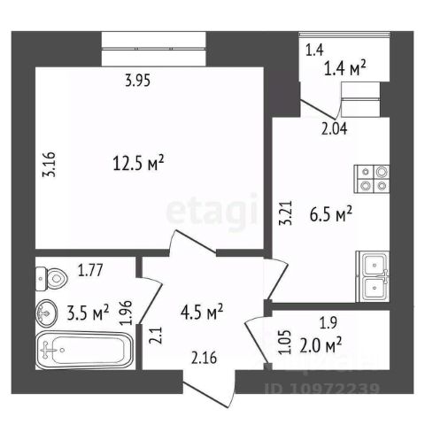Общая площадь квартиры 60 кв.м.