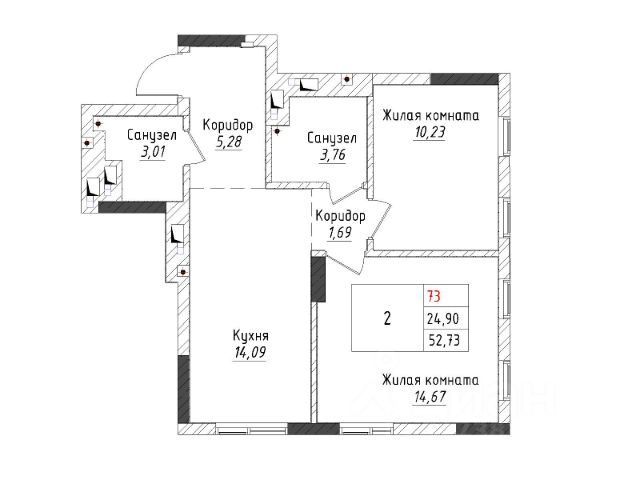 Жилая площадь 47.80 кв. м. от ГК "Первый Трест".