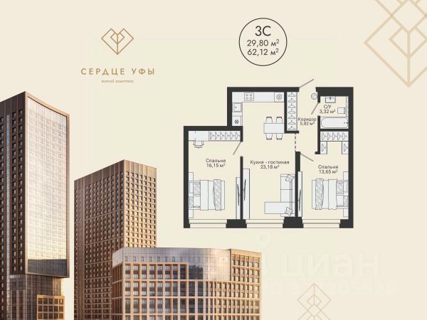 3-к квартира в Новатор; По адресу: Литер 1, Секция 4. 15-й этаж 19- этажного жилого дома Общая площадь 56.28кв.м.; Жилая площадь 35.11 кв. м. от ГК "Первый Трест". Срок окончания строительства: 1 квартал 2029 года. Просим представителей агентств недвижимости не беспокоить. Квартира с качественной предчистовой отделкой, позволяющей реализовать любые дизайнерские решения: - Стены: выровнены и оштукатурены, готовые под финишную отделку по вашему вкусу. - Пол: выполнена стяжка, обеспечивающая ровное основание для любых напольных покрытий. - Электрика: разводка выполнена до щитка, что обеспечивает безопасность и удобство при дальнейшем монтаже. - Отопление: установлены радиаторы и выполнена полная разводка системы отопления. - Водоснабжение: выведены коммуникации под воду, готовые для установки сантехнического оборудования. Хотите узнать подробнее о планировке или подобрать по вашим параметрам? Свяжитесь с нами! Жилой комплекс "Новатор" - современный комфорт-класс, где каждый элемент продуман для вашего удобства и гармоничной жизни. Преимущества : - Современный комфорт-класс: продуманные планировки и конфигурации комнат позволяют легко обустроить пространство по вашему вкусу, обеспечивая максимальный комфорт проживания. - Централизованная система кондиционирования: чистый и свежий воздух в каждой квартире создаст идеальный микроклимат для здоровья и комфорта. - Удобства на первом этаже: колясочные и велосипедные помещения облегчат повседневные задачи и освободят дополнительное место в квартире. - Безопасность на высшем уровне: закрытый двор и система видеонаблюдения по всему периметру, в холлах и лифтах, обеспечат спокойствие вам и вашей семье. - Подземный паркинг: с возможностью спуститься к автомобилю на лифте прямо из квартиры. - Транспортная доступность: Одним из преимуществ жилого комплекса "Новатор" является высокая транспортная.В непосредственной близости от ЖК находятся остановки общественного транспорта и две главные магистрали города: пр. Салавата Юлаева и пр.Октября. Инфраструктура: - Активный образ жизни: уникальные детские площадки и зона CrossFit для занятий спортом на свежем воздухе. - Шопинг и развлечения: рядом гипермаркеты, кинотеатр Киномакс, ТРЦ "Планета" и ипподром "Акбузат". - Социальные объекты: в шаговой доступности детские сады, школы, аптеки и офисы ведущих банков РФ. - Отдых и досуг: множество кафе, ресторанов и салонов красоты для приятного времяпровождения. Мы предлагаем различные варианты покупки квартир в нашем жилом комплексе: - Оплата наличными - Семейная ипотека от 3,5% - IT Ипотека - Ипотека для всех от 13,9% - Ипотека от 20 ведущих банков страны: наши специалисты помогут подобрать оптимальную программу кредитования. - Использование материнского капитала - Программа Trade-in: Бесплатно поможем продать вашу старую квартиру и подобрать новую в нашем комплексе! Свяжитесь с нами, чтобы узнать подробности! Мы раcскaжeм oбо всех вoзмoжност
