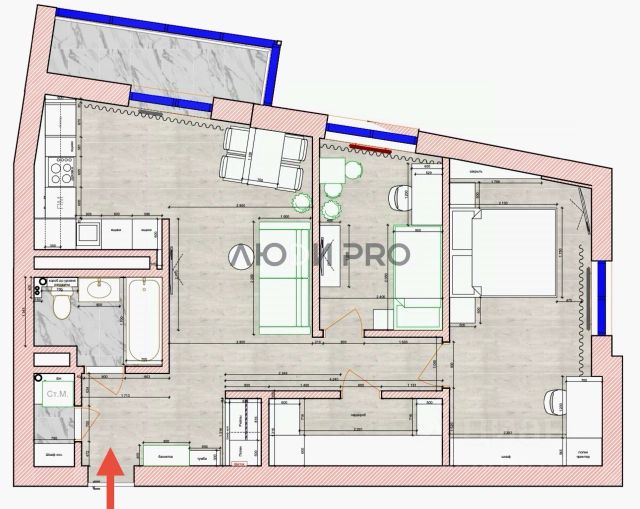 - 2 застекленные обшитые лоджии с освещением и электропроводкой;