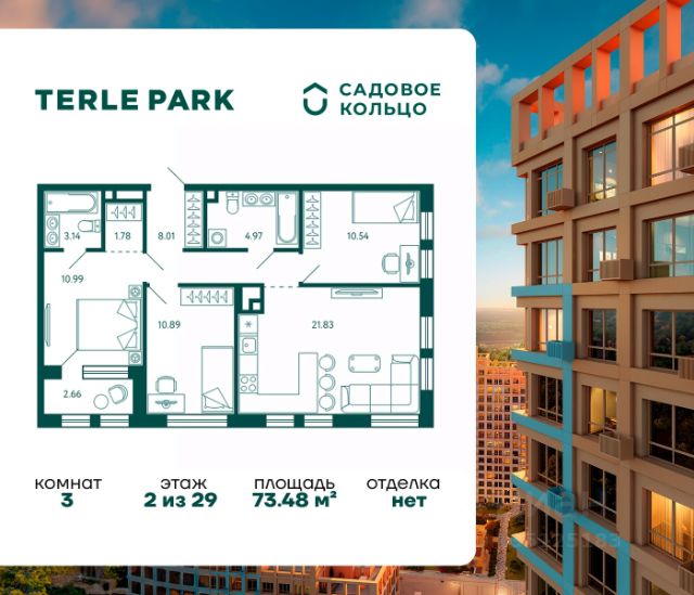 Продается квартира в ЖК Terle Park с 3 спальнями на 2 этаже 27 этажного дома. Общая площадь: 85.09 кв.м. Высота потолков 2.95 м. Срок сдачи 4 квартал 2025 г. Мастер-спальня. Вид на лес. С отделкой White box. Эскроу-счет. Застройщик ГК "Садовое кольцо". -Расположение Terle Park расположен на улице Авроры, в экологически чистом районе "Зелёная роща", на границе с лесопарком, который огибает река Уфа. Здесь можно наслаждаться чистым воздухом пригородной зоны, оставаясь в городской черте, с быстрым доступом к основным магистралям Уфы и удобной транспортной инфраструктурой. -Инфраструктура Комплекс расположен в шаговой доступности от ключевых образовательных учреждений: детский сад 24, лицей 5, школа 119. Практически через дорогу — станция скорой помощи, кардиологический центр, Республиканская детская больница и Республиканский перинатальный центр, что обеспечивает быстрый доступ к медицинской помощи. -Архитектура Шесть корпусов переменной этажности (от 10 до 29 этажей) гармонично вписываются в природный ландшафт района Зелёной рощи". Каждый корпус имеет индивидуальное оформление, подчеркивающее уникальность и современность комплекса. Дома возводятся по кирпично-монолитной технологии с навесным фасадом, что обеспечивает долговечность и эстетическую привлекательность. -Внутренний двор Внутренняя территория представляет собой уютный парк для жителей, где всё продумано до мелочей. Закрытый двор без машин обеспечивает безопасность и уют. Пространство разделено на различные зоны для отдыха: от прогулочных маршрутов и лаунж-зон, до террас для йоги и медитаций. Для общения и ярких событий будет обустроена событийная площадь. Для любителей спорта на территории предусмотрены воркаут зона, настольный теннис и многофункциональная площадка для игр. -Входные группы Подъезды расположены на уровне земли — удобно для колясок, велосипедов и самокатов. Лобби в светлой палитре с зелёными и оранжевыми акцентами дополняет рабочая зона для встреч и онлайн-конференций. В домах предусмотрены современные бесшумные лифты.