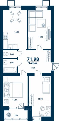 • ✅ Минимальная площадь: 69,9 м²