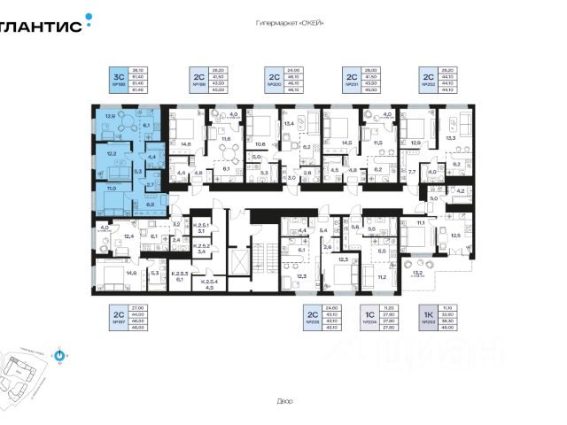 3-к квартира в АТЛАНТИС; По адресу: ул. Маршала Жукова Литер 1, Секция 2. 5-й этаж 32- этажного жилого дома Общая площадь 61.40кв.м.; Жилая площадь 23.20 кв. м. от ГК "Первый Трест". Срок окончания строительства: 4 квартал 2027 года. Квартира с свободной планировкой, позволяющей реализовать любые дизайнерские решения: - Стены выровнены и оштукатурены, готовые под финишную отделку по вашему вкусу. - Пол: выполнена стяжка, обеспечивающая ровное основание для любых напольных покрытий. - Электрика: разводка выполнена до щитка, что обеспечивает безопасность и удобство при дальнейшем монтаже. - Отопление: установлены радиаторы и выполнена полная разводка системы отопления. - Водоснабжение: выведены коммуникации под воду, готовые для установки сантехнического оборудования. Жилой комплекс Атлантис расположен в непосредственной близости от живописного озера Кашкадан. Из окон открываются уникальные виды на парк, водную гладь и панораму города. Прогулки по набережной, занятия спортом на открытом воздухе и множество других активностей станут приятным дополнением удобной локации. Многоуровневое благоустройство Первый ярус - открытая территория, двор-сад с фонтаном; окружённый арт-объектами и элементами ландшафтного дизайна. Место, где благоустройство жилого комплекса бесшовно соединяется с природой парка Кашкадан. Второй - частное пространство для отдыха жильцов с концептуальными детскими и спортивными зонами. Наслаждайтесь видами на озеро со смотровой площадки и прогулками среди зелёных композиций. Архитектура Внешний вид жилого комплекса вдохновлён легендой, но при этом является современным и инновационным. Шесть видовых башен и секции переменной этажности обеспечивают оптимальный приток естественного света и открывают великолепный вид на озеро и парк. Внутренние дворы каждой очереди соединены мостом-кольцом, связывающим всю архитектурную композицию воедино. Выбирайте комфортную высоту и площадь для жизни Множество планировок, соответствующих стандартам современного бизнес-класса: - Квартиры с мастер-спальнями и гостевыми санузлами. - Крупноформатные окна с роскошными видами. - Просторные прихожие и кухни-гостиные. - Террасы с видом на озеро и парк. - Удобные гардеробные. - Двухуровневые квартиры. Инфраструктура в пешей доступности Продукты - 15 Здоровье - 19 Кафе и рестораны - 8 Детские сады - 6 Образование - 10 Спорт - 11 Шоппинг - 17 Красота и уход - 19 Культура и досуг - 12 Мы предлагаем различные варианты покупки квартир в нашем жилом комплексе:- Оплата наличными - Рассрочка до 24 мес. - Семейная ипотека от 5,2% - Льготная ипотека для программистов - Базовая ипотека от 18,7% - Ипотека от 20 ведущих банков: наши специалисты помогут подобрать оптимальную программу кредитования. - Использование материнского капитала - Программа трейд-ин: Бесплатно поможем продать вашу старую квартиру и подобрать новую в нашем комплексе! Свяжитесь с нами, чтобы узнать по