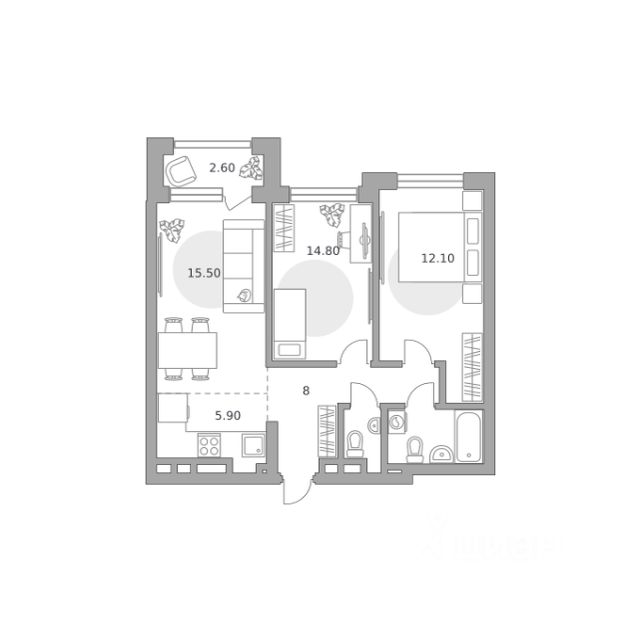 Продаётся 3-комнатная квартира 1038, площадью 80,10 м², на 8 этаже в ЖК "Лесная симфония" корпус 1. Стоимость — от 14941201 руб. Квартира без отделки, планировка распашная, окна во двор.