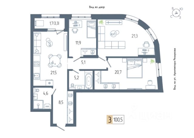 Продаётся 3-комнатная квартира в строящемся доме (дом 1), срок сдачи: III-кв. 2026, общей площадью 100.5 кв.м., на 5 этаже. Новый жилой комплекс "АУРУМ" от застройщика "СтроиТЭК" расположен по адресу Республика Башкортостан, Уфа, Комсомольская улица.