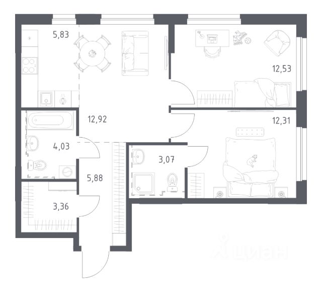 Продаётся уютная двухкомнатная квартира площадью 52.2 квадратных метра на третьем этаже нового панельного дома, расположенного в микрорайоне Дёма по адресу улица Мечтателей, 13. сдача дома 4 кв.2025, что гарантирует современные стандарты строительства и комфорта. Квартира обладает жилой площадью 29.6 квадратных метров и кухней размером 8 квадратных метров, предоставляя достаточно пространства для комфортного проживания и приготовления пищи. Наличие балкона добавляет дополнительное место для отдыха и возможность наслаждаться свежим воздухом без выхода из дома. Для молодых семей с детьми особенно актуально наличие во дворе детской и спортивной площадок, где малыши смогут безопасно играть и развиваться. А также недалеко от дома находятся школа и детский сад, что значительно упрощает логистику семейного быта. Любителям активного образа жизни непременно понравится близость фитнес-центра, а заботящиеся о своем внешнем виде оценят расположенные рядом салоны красоты и ателье. Хотя квартира продается без предварительного ремонта, это открывает прекрасную возможность обустроить её согласно собственным предпочтениям и вкусам, создав именно тот интерьер, о котором всегда мечтали. Совмещённый санузел обеспечивает рациональное использование пространства и удобство в использовании. Приобретая эту квартиру, вы выбираете комфортное и безопасное проживание в новом современном доме с развитой внутренней инфраструктурой. Не упустите шанс стать владельцем жилья, которое сочетает в себе качество, стиль и практичность!