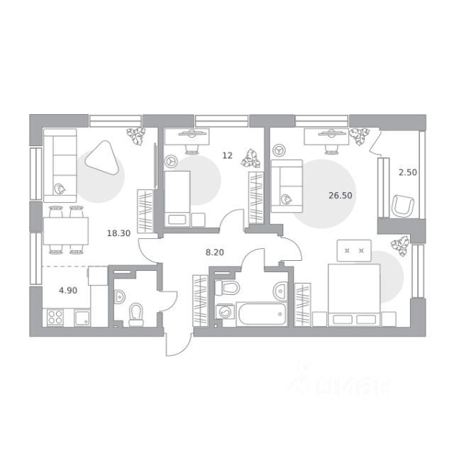 Просторные комнаты, панорамное остекление, большая кухня-гостиная, 2 санузла, также спальная комната с мастер-спальней.