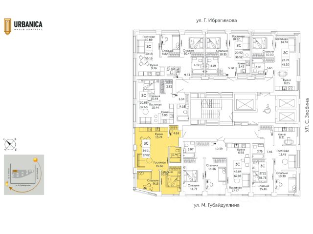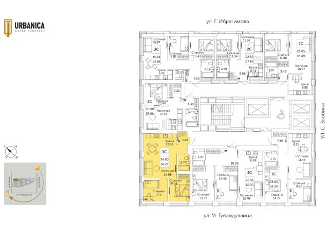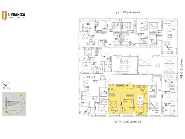 Продается УДАЧНАЯ трехкомнатная квартира-смарт в ЖК Урбаника Литер 3 (Зеленая роща) от надежного застройщика: дом построен, ведется отделка фасада. На 7 этаже малоэтажной 22-хэт. секции (32-хэт. секция другая!) жилого дома по ул. Губайдуллина, 2. В КРЫЛЕ ВСЕГО 5 КВАРТИР. Площадь 57/22,7/20 кв. м. Сдача в 1 кв.2026 года. Рядом парк Лесоводов, напротив сквер Губайдуллина, фитнес арена 3000, ТЦ Аркада, школы, дет. садики. До центра города 5 минут по пр. Салавата Юлаева.