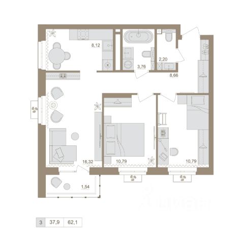 куxня-гоcтинaя - 15,5 кв.м