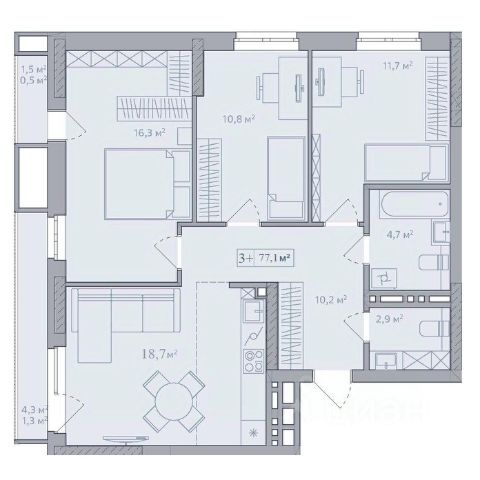 Продаётся 3-комнатная квартира в строящемся доме (Корпус 1), срок сдачи: IV-кв. 2026, общей площадью 77.56 кв.м., на 10 этаже. Жилой комплекс "Дуэт" - дом комфорт-класса. Жилой дом представляет собой четырнадцатиэтажное кирпичное здание П-образной формы, состоящее из четырёх блок-секций. В комплексе представлены квартиры различной площади - от однокомнатных до трёхкомнатных, с тщательно продуманными планировками. В каждом подъезде по два современных бесшумных лифта (пассажирский и грузопассажирский), в которых никогда не тесно - комфортно ехать большой компанией и перевозить крупногабаритные вещи, велосипеды и коляски. В жилом комплексе высокие и прозрачные входные группы, домофон в тёплом тамбуре, понятная навигация на этажах. Возле дома оборудованы автопарковочные места. На техническом этаже расположены кладовые помещения, которые жильцы могут использовать по своему усмотрению. На первых этажах домов будет создана уникальная среда для комфортной жизни. Здесь расположатся пространства для прогулок и отдыха, а также магазины и коммерческие помещения. СЗ "Альянс-Групп", занимаясь строительством многоквартирных жилых комплексов, применяет современные технологии и высококачественные материалы, которые отличаются высокой прочностью и долговечностью. Каждый жилой комплекс разрабатывается с учетом мельчайших деталей: от привлекательного внешнего вида зданий до эргономичных и удобных планировок, а также тщательного благоустройства придомовых территорий и обеспечения безопасности. 3-комнатной квартиры с евроремонтом в Стерлитамакском районе республики Башкортостан.