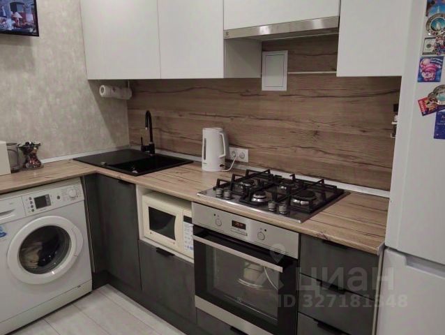 На кухне - встроенный кухонный гарнитур, изготовленный по индивидуальному заказу фирмы Planeta со специальным водо - и грязеотталкивающим покрытием, качественной фурнитурой, встроенной вытяжкой, варочной панелью и духовым шкафом фирмы Electrolux.На кухню заведен специальный кабель под электроплиту.