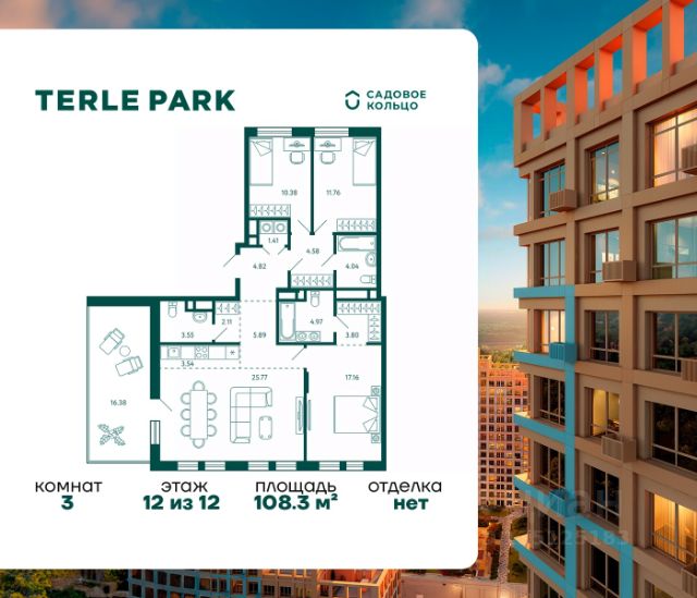 Продается квартира в ЖК Terle Park с 3 спальнями на 3 этаже 14 этажного дома. Общая площадь: 98.6 кв.м. Высота потолков 2.95 м. Срок сдачи 4 квартал 2025 г. Мастер-спальня. Эскроу-счет. Застройщик ГК "Садовое кольцо". -Расположение Terle Park расположен на улице Авроры, в экологически чистом районе "Зелёная роща", на границе с лесопарком, который огибает река Уфа. Здесь можно наслаждаться чистым воздухом пригородной зоны, оставаясь в городской черте, с быстрым доступом к основным магистралям Уфы и удобной транспортной инфраструктурой. -Инфраструктура Комплекс расположен в шаговой доступности от ключевых образовательных учреждений: детский сад 24, лицей 5, школа 119. Практически через дорогу — станция скорой помощи, кардиологический центр, Республиканская детская больница и Республиканский перинатальный центр, что обеспечивает быстрый доступ к медицинской помощи. -Архитектура Шесть корпусов переменной этажности (от 10 до 29 этажей) гармонично вписываются в природный ландшафт района Зелёной рощи". Каждый корпус имеет индивидуальное оформление, подчеркивающее уникальность и современность комплекса. Дома возводятся по кирпично-монолитной технологии с навесным фасадом, что обеспечивает долговечность и эстетическую привлекательность. -Внутренний двор Внутренняя территория представляет собой уютный парк для жителей, где всё продумано до мелочей. Закрытый двор без машин обеспечивает безопасность и уют. Пространство разделено на различные зоны для отдыха: от прогулочных маршрутов и лаунж-зон, до террас для йоги и медитаций. Для общения и ярких событий будет обустроена событийная площадь. Для любителей спорта на территории предусмотрены воркаут зона, настольный теннис и многофункциональная площадка для игр. -Входные группы Подъезды расположены на уровне земли — удобно для колясок, велосипедов и самокатов. Лобби в светлой палитре с зелёными и оранжевыми акцентами дополняет рабочая зона для встреч и онлайн-конференций. В домах предусмотрены современные бесшумные лифты.