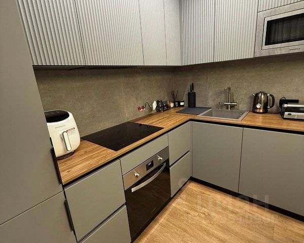 Кухня - полы керамогранит, теплый пол(так же управляется по Wi Fi). Стены-ротбанд по маякам. Кондиционер. Новый гарнитур, встроенная варочная поверхность, дорогая сантехника, мойка гранит.