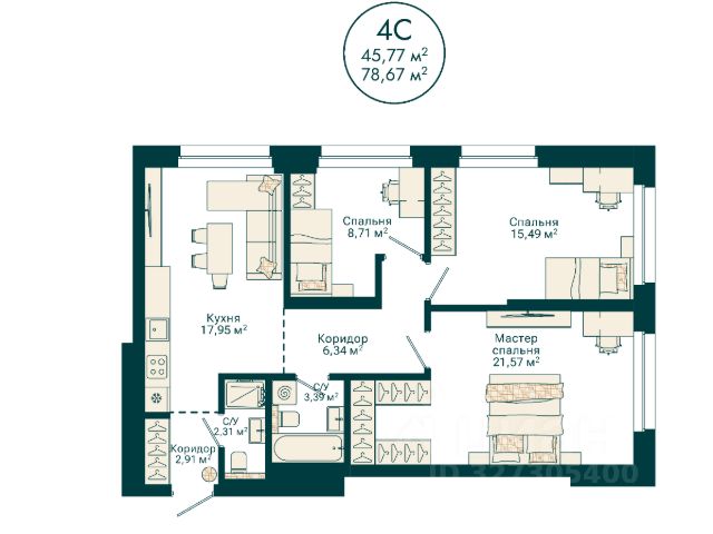 • ✅ Минимальная площадь: 65,5 м²