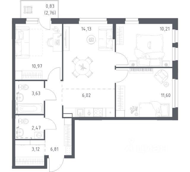 Продаётся 3-комнатная квартира в строящемся доме (Корпус 1), срок сдачи: III-кв. 2028, общей площадью 84.14 кв.м., на 6 этаже. Новый жилой комплекс "Пьермонт" от застройщика "СЗ АРТ-СИТИ" расположен по адресу Республика Башкортостан, Уфа, микрорайон Южный-2.