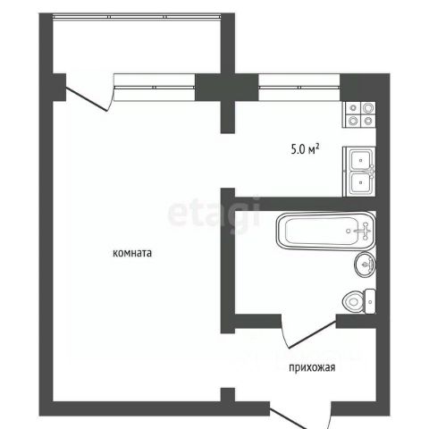 Кухня: Просторная (8 кв. м), полностью готова к приготовлению пищи. Есть выход на лоджию.