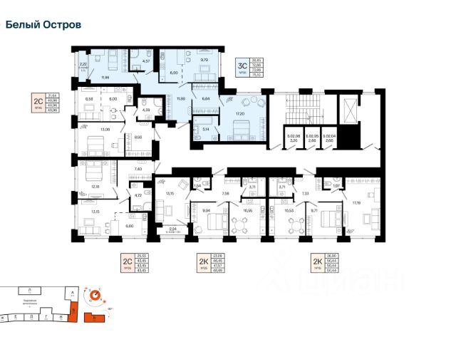 • ✓ В базе Циан 31 больших квартир в острове Жилой комплекс Белый в микрорайоне Кузнецовский Затон