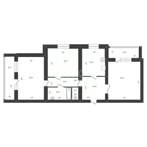 Формат свободной планировки — евро-двушка (возможна планировка в полноценную 23-комнатную)