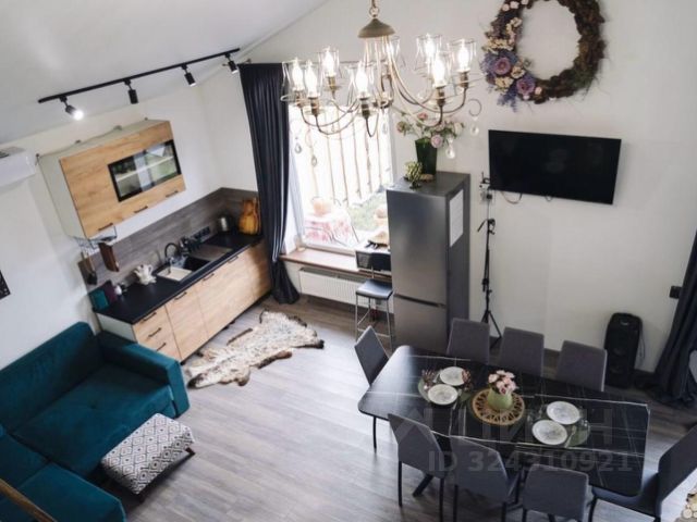 Большая Кухня гостиная с мебельным гарнитуром и бытовой техникой, с красивым видом на свой зеленый двор, с множеством окон и натурального света.