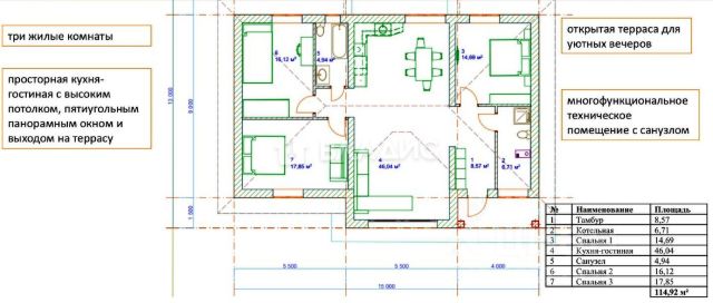 Код объекта: 1688509. Подходит под семейную ипотеку. Продаётся отличный дом в Байраке. Дом расположен в удобной локации в тихом спокойном месте, рядом остановка. Соседи живут, новый жилой массив. Все коммуникации проложены, проект дома Московский, высокие панорамные окна, а также потолки. Дом построен в 2024 году из газобетона , общая площадь — 114,2 кв. м. Жилая площадь составляет 48,66 кв. м, а площадь кухни — 46,04 кв. м. Три комнаты площадью 14,69 + 16,12 + 17,85 кв. м, удобная планировка. На участке площадью 8 соток есть электричество, отопление обеспечивается своей котельной. Водоснабжение от скважины, подъезд к участку — щебенчатый. Прекрасное место для проживания и отдыха, рядом озеро, поле, лес. Развитая инфраструктура: ФАП, магазины и остановки общественного транспорта.