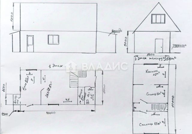 • На первом этаже — веранда, просторная кухня, зал и душевая комната