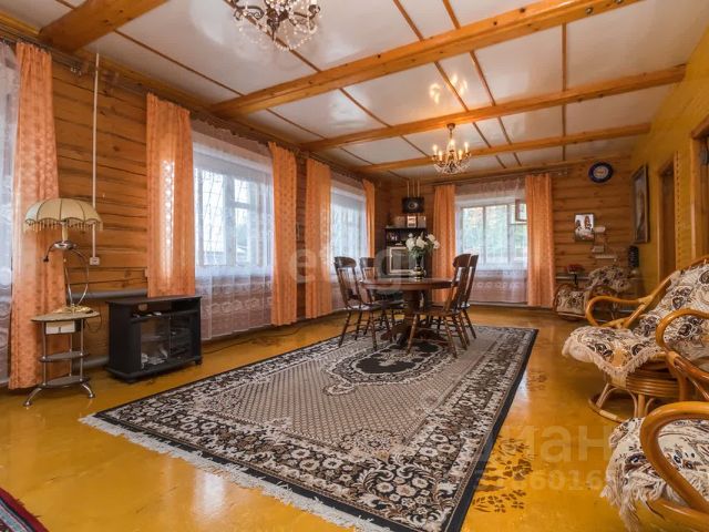 Стены бревенчатые, сохраняющие тепло зимой и прохладу летом, отштукатурены и обшиты сайдингом.