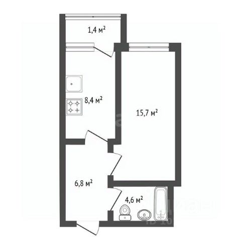 Площадь санузла: 2,8 м²