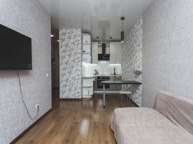Встроенная кухня с духовым шкафом, вытяжкой, микроволновкой и индукционной варочной поверхностью. Имеется электрический чайник и полноценный большой холодильник, стиральная машина, посудомоечная машина, телевизор плазма на кухне. Встроенный шкаф к прихожей. Плазму из зала собственник забирает.
