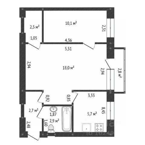 Общая площадь квартиры 44,5 кв.м