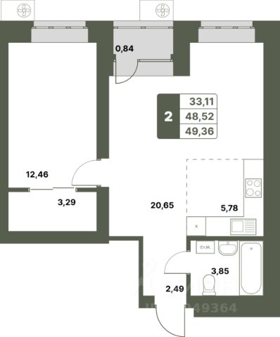 63 342 ₽/м²