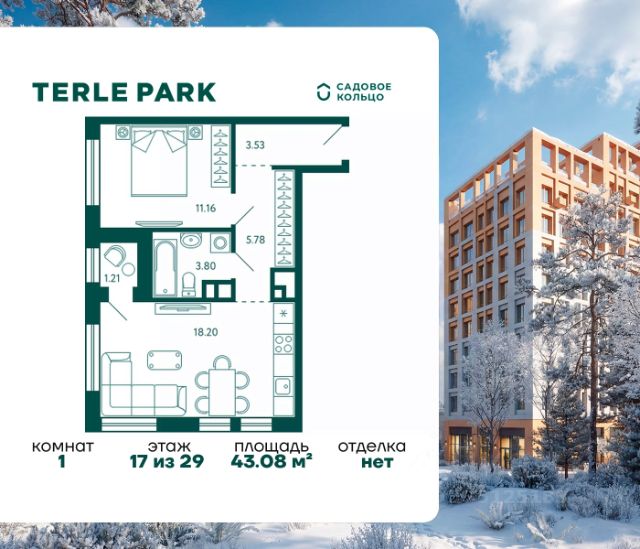 Продается квартира в ЖК Terle Park с 1 спальней на 4 этаже 29 этажного дома. Общая площадь: 43.37 кв.м. Высота потолков 2.95 м. Срок сдачи 3 квартал 2026 г. Вид на лес. С отделкой White box. Эскроу-счет. Застройщик ГК "Садовое кольцо". -Расположение Terle Park расположен на улице Авроры, в экологически чистом районе "Зелёная роща", на границе с лесопарком, который огибает река Уфа. Здесь можно наслаждаться чистым воздухом пригородной зоны, оставаясь в городской черте, с быстрым доступом к основным магистралям Уфы и удобной транспортной инфраструктурой. -Инфраструктура Комплекс расположен в шаговой доступности от ключевых образовательных учреждений: детский сад 24, лицей 5, школа 119. Практически через дорогу — станция скорой помощи, кардиологический центр, Республиканская детская больница и Республиканский перинатальный центр, что обеспечивает быстрый доступ к медицинской помощи. -Архитектура Шесть корпусов переменной этажности (от 10 до 29 этажей) гармонично вписываются в природный ландшафт района Зелёной рощи". Каждый корпус имеет индивидуальное оформление, подчеркивающее уникальность и современность комплекса. Дома возводятся по кирпично-монолитной технологии с навесным фасадом, что обеспечивает долговечность и эстетическую привлекательность. -Внутренний двор Внутренняя территория представляет собой уютный парк для жителей, где всё продумано до мелочей. Закрытый двор без машин обеспечивает безопасность и уют. Пространство разделено на различные зоны для отдыха: от прогулочных маршрутов и лаунж-зон, до террас для йоги и медитаций. Для общения и ярких событий будет обустроена событийная площадь. Для любителей спорта на территории предусмотрены воркаут зона, настольный теннис и многофункциональная площадка для игр. -Входные группы Подъезды расположены на уровне земли — удобно для колясок, велосипедов и самокатов. Лобби в светлой палитре с зелёными и оранжевыми акцентами дополняет рабочая зона для встреч и онлайн-конференций. В домах предусмотрены современные бесшумные лифты.