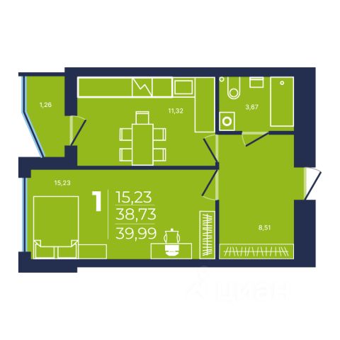 В квартире предчистовая отделка и остекленная лоджия 2,88кв.м.