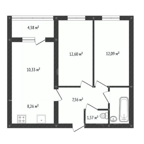 • Планировка мечты: Просторная кухня-гостиная 19 м² — сердце дома, где будет удобно всей семье. Две отдельные комнаты (жилая площадь 24.8 м²).