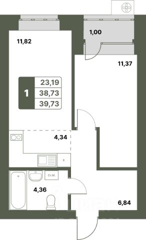 Продается 1-к-комнатная квартира в ЖК "Свой Берег" от ГК "Архстрой Групп". 12-й этаж 12-этажного жилого дома, общая площадь 39.73 кв.м., жилая площадь 23.19 кв.м. Отделка получистовая.