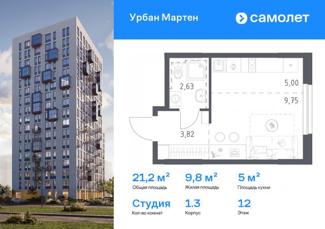 Квартира расположена на 12 этаже.