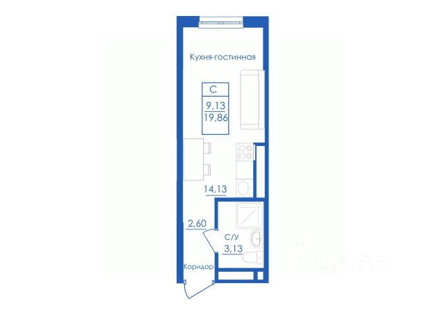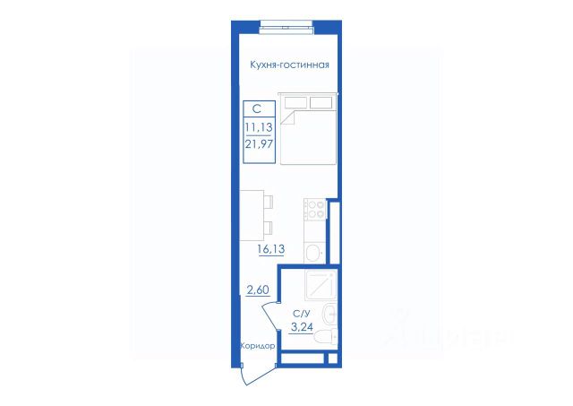 общая площaдь квaртиры 25,5 кв.м