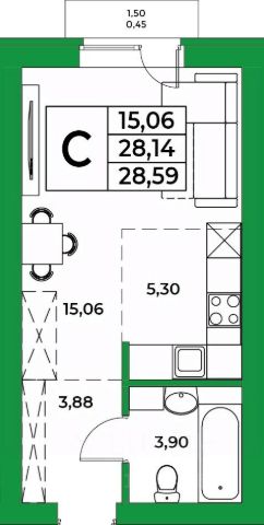 • ✅ Минимальная площадь: 27,1 м²
