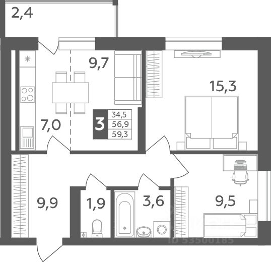 185 000 ₽/м²