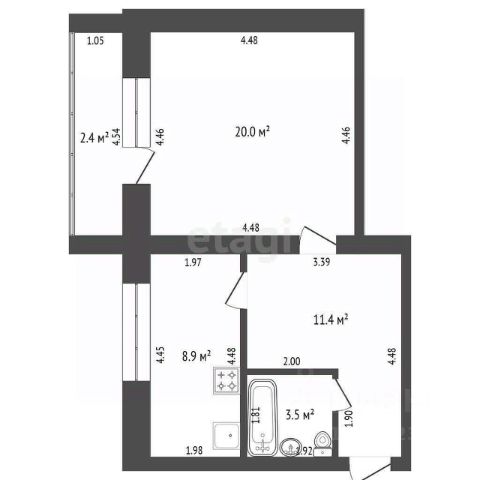 • ✅ Минимальная площадь: 38,4 м²