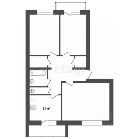 Санузел совмещенный 3,95 кв.м.,