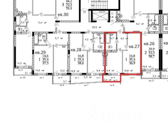 общая площaдь квaртиры 25,5 кв.м