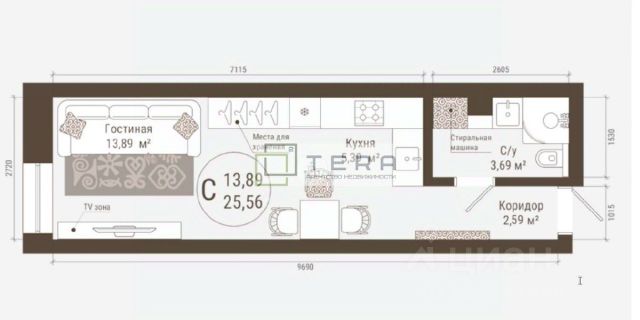 169 843 ₽/м²