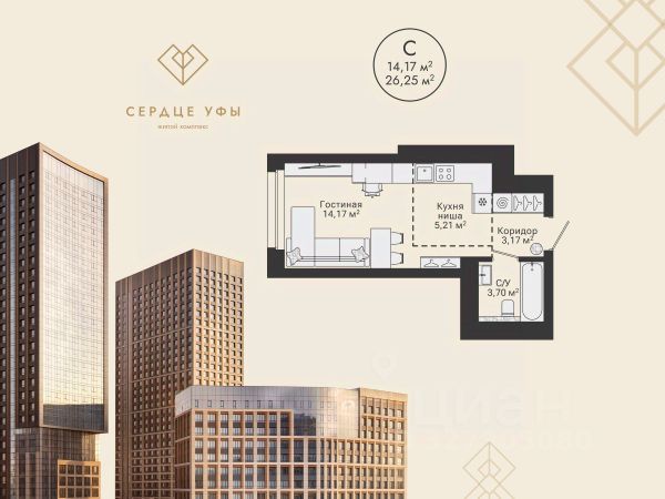 Продается квартира в ЖК Terle Park студия на 9 этаже 14 этажного дома. Общая площадь: 29.66 кв.м. Высота потолков 3.1 м. Срок сдачи 3 квартал 2026 г. Вид на лес. Эскроу-счет. Застройщик ГК "Садовое кольцо". -Расположение Terle Park расположен на улице Авроры, в экологически чистом районе "Зелёная роща", на границе с лесопарком, который огибает река Уфа. Здесь можно наслаждаться чистым воздухом пригородной зоны, оставаясь в городской черте, с быстрым доступом к основным магистралям Уфы и удобной транспортной инфраструктурой. -Инфраструктура Комплекс расположен в шаговой доступности от ключевых образовательных учреждений: детский сад 24, лицей 5, школа 119. Практически через дорогу — станция скорой помощи, кардиологический центр, Республиканская детская больница и Республиканский перинатальный центр, что обеспечивает быстрый доступ к медицинской помощи. -Архитектура Шесть корпусов переменной этажности (от 10 до 29 этажей) гармонично вписываются в природный ландшафт района Зелёной рощи". Каждый корпус имеет индивидуальное оформление, подчеркивающее уникальность и современность комплекса. Дома возводятся по кирпично-монолитной технологии с навесным фасадом, что обеспечивает долговечность и эстетическую привлекательность. -Внутренний двор Внутренняя территория представляет собой уютный парк для жителей, где всё продумано до мелочей. Закрытый двор без машин обеспечивает безопасность и уют. Пространство разделено на различные зоны для отдыха: от прогулочных маршрутов и лаунж-зон, до террас для йоги и медитаций. Для общения и ярких событий будет обустроена событийная площадь. Для любителей спорта на территории предусмотрены воркаут зона, настольный теннис и многофункциональная площадка для игр. -Входные группы Подъезды расположены на уровне земли — удобно для колясок, велосипедов и самокатов. Лобби в светлой палитре с зелёными и оранжевыми акцентами дополняет рабочая зона для встреч и онлайн-конференций. В домах предусмотрены современные бесшумные лифты.