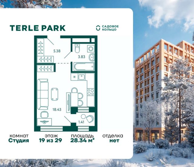 Продается квартира в ЖК Terle Park студия на 13 этаже 14 этажного дома. Общая площадь: 29.47 кв.м. Высота потолков 3.1 м. Срок сдачи 4 квартал 2025 г. Эскроу-счет. Застройщик ГК "Садовое кольцо". -Расположение Terle Park расположен на улице Авроры, в экологически чистом районе "Зелёная роща", на границе с лесопарком, который огибает река Уфа. Здесь можно наслаждаться чистым воздухом пригородной зоны, оставаясь в городской черте, с быстрым доступом к основным магистралям Уфы и удобной транспортной инфраструктурой. -Инфраструктура Комплекс расположен в шаговой доступности от ключевых образовательных учреждений: детский сад 24, лицей 5, школа 119. Практически через дорогу — станция скорой помощи, кардиологический центр, Республиканская детская больница и Республиканский перинатальный центр, что обеспечивает быстрый доступ к медицинской помощи. -Архитектура Шесть корпусов переменной этажности (от 10 до 29 этажей) гармонично вписываются в природный ландшафт района Зелёной рощи". Каждый корпус имеет индивидуальное оформление, подчеркивающее уникальность и современность комплекса. Дома возводятся по кирпично-монолитной технологии с навесным фасадом, что обеспечивает долговечность и эстетическую привлекательность. -Внутренний двор Внутренняя территория представляет собой уютный парк для жителей, где всё продумано до мелочей. Закрытый двор без машин обеспечивает безопасность и уют. Пространство разделено на различные зоны для отдыха: от прогулочных маршрутов и лаунж-зон, до террас для йоги и медитаций. Для общения и ярких событий будет обустроена событийная площадь. Для любителей спорта на территории предусмотрены воркаут зона, настольный теннис и многофункциональная площадка для игр. -Входные группы Подъезды расположены на уровне земли — удобно для колясок, велосипедов и самокатов. Лобби в светлой палитре с зелёными и оранжевыми акцентами дополняет рабочая зона для встреч и онлайн-конференций. В домах предусмотрены современные бесшумные лифты.