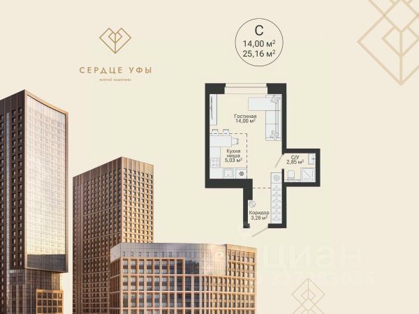 Ваша будущая студия 25,16 кв.м. с продуманной планировкой: спальня — 14 кв.м. кухня-гостиная — 5,03 кв.м. прихожая — 3,28 кв.м. санузел совмещенный — 2,85 кв.м. высота потолков — 2,7 кв.м. отделка — предчистовая Успейте купить по выгодным ценам на старте продаж! Подберем лучшую программу покупки для вас: Семейная ипотека IT-ипотека Военная ипотека Стандартная ипотека Готовая жизнь "здесь и сейчас": Потолки до 3 м Паркинг — более 800 машиномест, в том числе подземные, надземные и гостевые места Закрытый двор, охрана, видеонаблюдение по периметру и в подъездах 237 кладовых Площадки для выгула собак Воркаут-зоны и велодорожки Здесь формируется сообщество, где ценят надежность, статус и функциональность пространства для всей семьи. ЖК "Сердце Уфы" — место "не в центре", а в сердце Уфы. Здесь вы сохраните связь с природой и любовь к активному отдыху и будете пользоваться всеми преимуществами городской и транспортной инфраструктуры. Транспортная доступность: 5 минут до проспекта Салавата Юлаева 15 минут до центра города 5 минут пешей прогулки до ближайших остановок 12 минут до выезда из города Можно за 5 минут доехать до зеленого массива при ул. Рихарда Зорге и лесопарка за ул. Менделеева с горнолыжным склоном и трассой для беговых лыж. Еще ближе — до зоны тропы здоровья "Театральная". "Сердце Уфы" — центр притяжения вашей жизни. Все важное для семьи — в пешей доступности. От детского развития до спорта премиум-класса. Это место для динамичного ритма жизни в режиме многозадачности семьи. Дом находится в районе с развитой социальной инфраструктурой. В пешей доступности: детские сады, школы поликлиники, аптеки, медцентр магазины, ПВЗ фитнес-клубы, спа, салоны красоты, рестораны До ТЦ "Планета" — 4 минуты на авто. Успейте оформить сделку по выгодной цене на старте продаж. Приходите в наш офис продаж на чашечку кофе, чтобы лично узнать все детали и забронировать квартиру вашей мечты. Напишите или позвоните нам, чтобы назначить встречу!