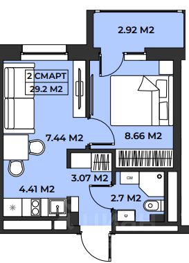 - общая площадь квaртиpы 30.05 кв.м.,