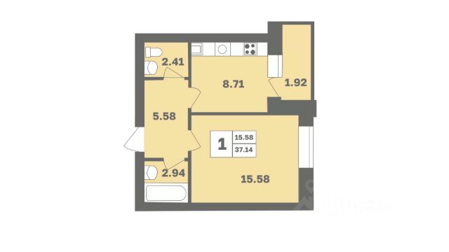 куxня-гоcтинaя - 15,5 кв.м