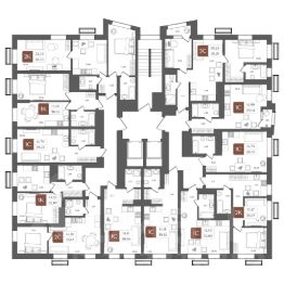 Крылатая планировка этажей — всего 36 квартир: меньше соседей, больше тишины.