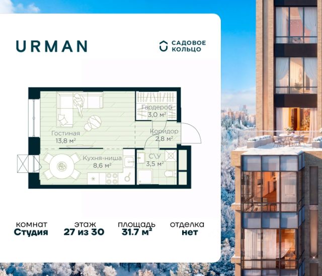 Успейте забронировать по акционной цене! Стоимость квартиры указана со скидкой, ваша выгода составит 312723 рублей. Предложение ограничено. Звоните, чтобы узнать подробнее! Продается квартира в ЖК Urman City студия на 3 этаже 30 этажного дома. Общая площадь: 29.71 кв.м. Высота потолков 3.4 м. Срок сдачи 2 квартал 2026 г. Эскроу-счет. Застройщик ГК "Садовое кольцо". -Расположение Urman расположен прямо в сердце лесного массива. Прогулка по благоустроенным лесным тропам или 10 мин езды до центра города — выбор за вами. Собственная дорога через лес обеспечивает приватность и тишину, защищая от городского шума. -Инфраструктура Urman предлагает разнообразную собственную инфраструктуру: спортивные зоны, детские площадки, кафе и уютные общественные пространства. Планировки квартир продуманы до мелочей, обеспечивая комфорт и функциональность. -Архитектура Неоклассические пропорции, игра стекол и оттенков кирпича, вдохновленная североевропейскими мотивами, создают уникальный облик комплекса. Разновысотные корпуса открывают впечатляющие виды на лес и реку, делая каждый дом по-настоящему особенным. -Внутренний двор Закрытый трехуровневый двор впечатляет гармонией и уютом. Продуманный ландшафт и связь с окружающим лесом создают идеальное пространство для отдыха, прогулок и семейного времяпрепровождения. -Входные группы Входные группы оформлены элегантно и продуманно. Акцентные элементы, ландшафтные композиции и представительская зона в стиле эко-лофт создают эффект "портала" в приватный мир комплекса. Квартира-студия первичка в районе Октябрьский в городе Уфа.